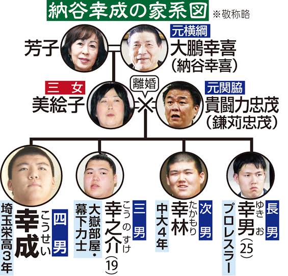 二男の幸林は中央大学の相撲部に所属する現役選手で、三男の幸之介は『納谷』のしこ名で活躍する幕下力士です。